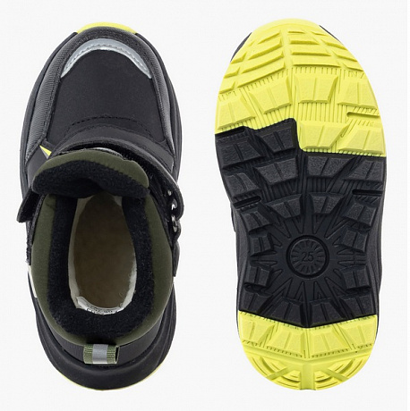 Верх из мембранного текстиля и вставок из экокожи непромокаем и подходит для ходьбы по снегу и мокрым участкам. Подкладка из натуральной мягкой шерсти согревает ноги при перепаде температур. Съёмная ортопедическая стелька с шерстяным покрытием оказывает лечебное воздействие благодаря выкладке продольного и поперечного сводов. При помощи двух липучек Velcro ребёнок сможет быстро и самостоятельно надеть и снять обувь. Ботинки подходят для профилактики и коррекции всех видов плоскостопия и развития деформационных процессов в стопах у детей.