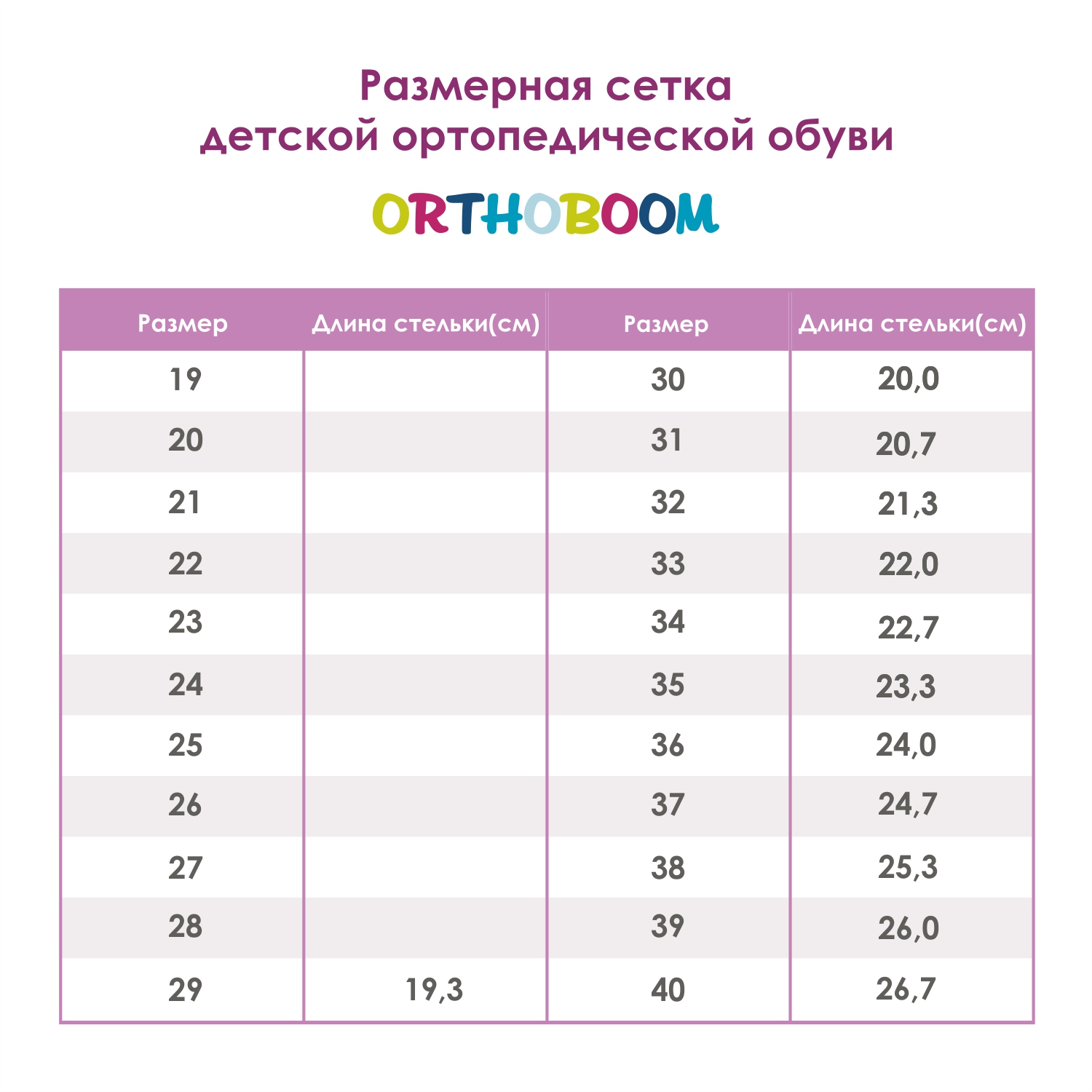 4. Найдите соответствующий размер в таблице размеров, расположенной ниже.
